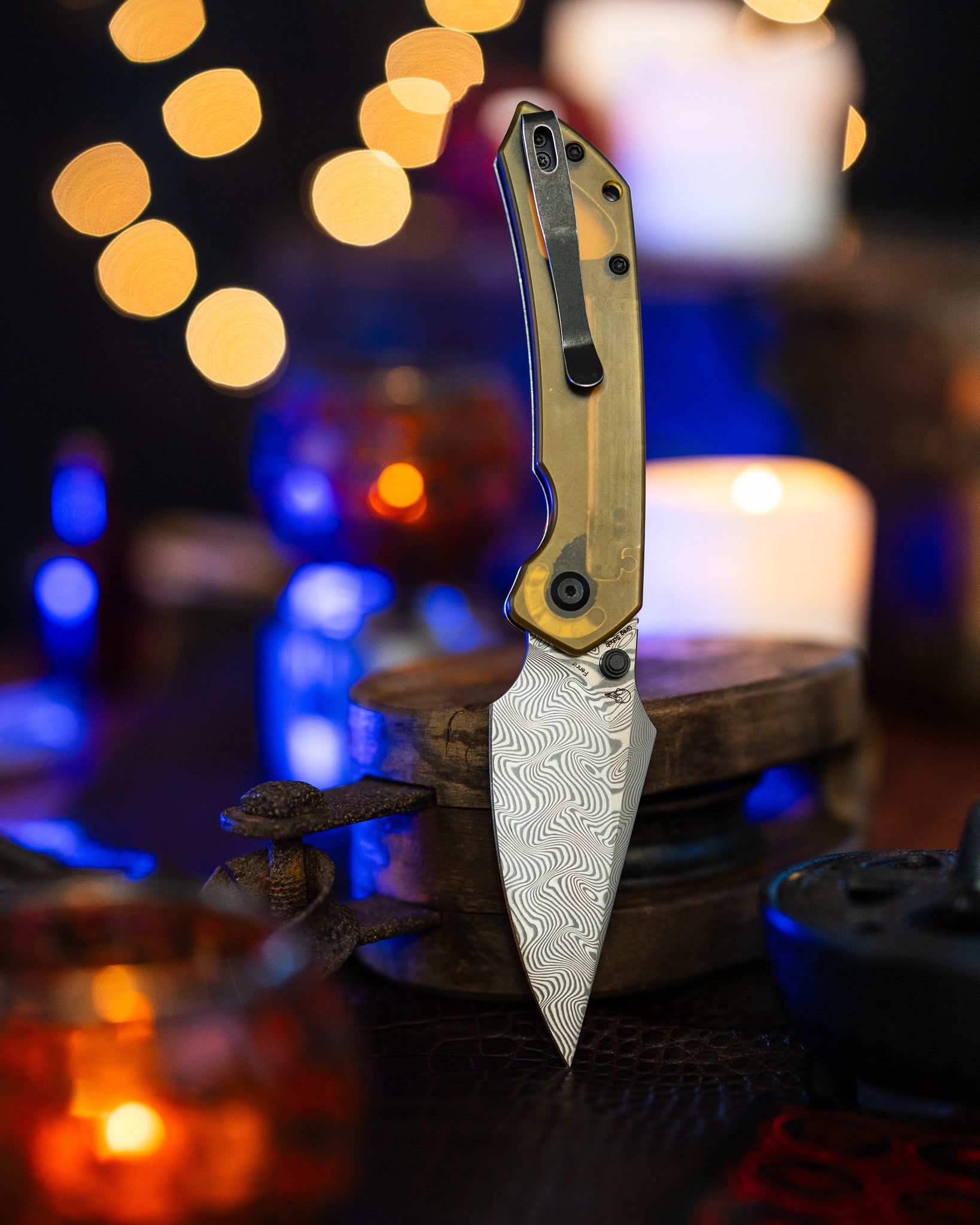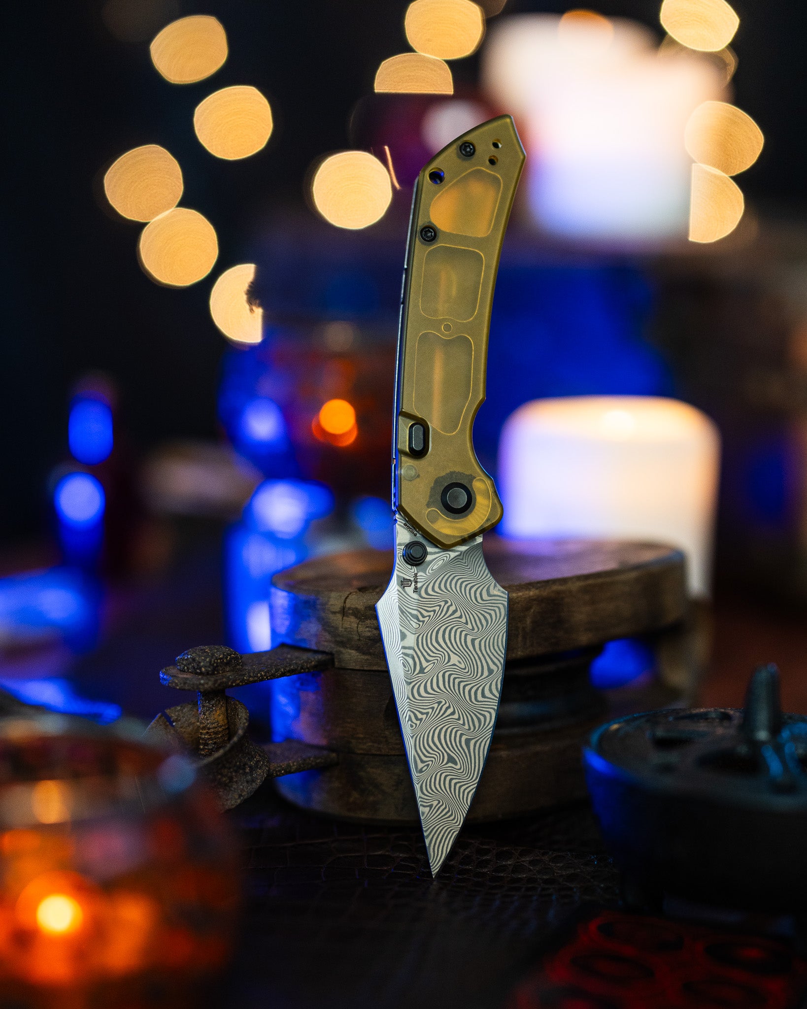 the Ultem is transparent enough to see the Damascus pattern when closed